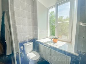 Объёмная ванная-туалет с большим окном.