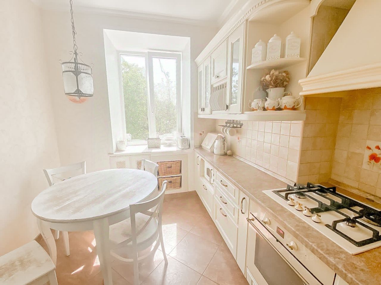 Три уютные, светлые комнаты обставленные очаровательной мебелью.