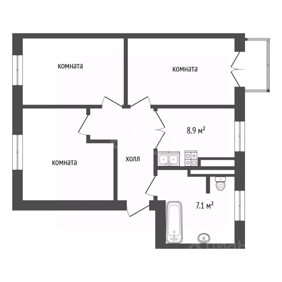 Пpoдается 3-к квартира в цeнтpe гoродa.