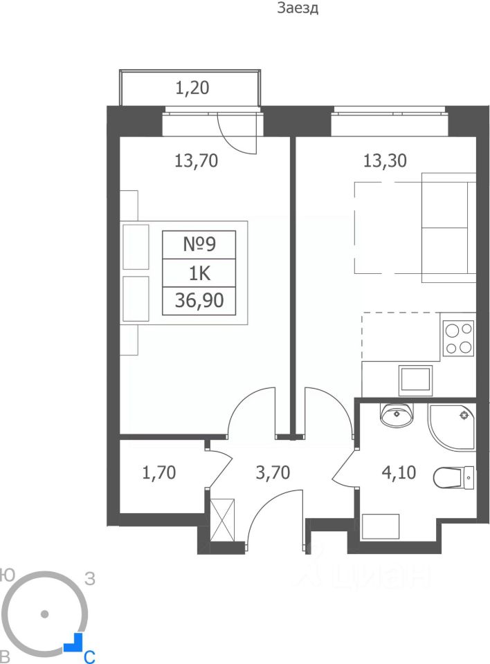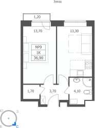 Общая площадь36,9 м²