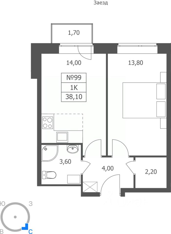 Общая площадь38,1 м²