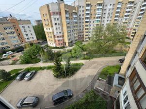 Ухоженный двор с огороженной территорией, с зелеными насаждениями, детской площадкой, местами для наземной парковки.