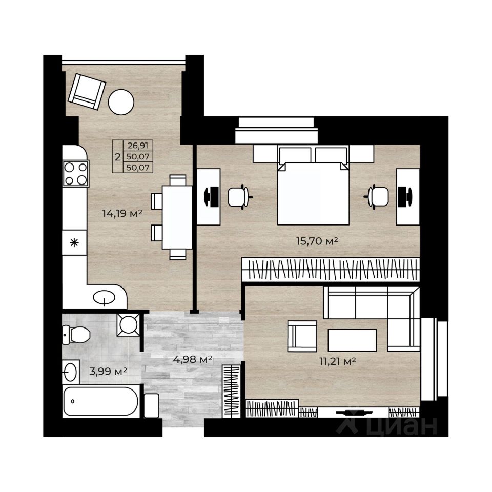 Площадь - 50,07 кв мОтделка - предчистоваяСдача дома- 2 квартал 2024Стены - кирпич