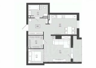 Общая площадь квартиры - 58,9 м², кухня 16 м², комната 24 м².