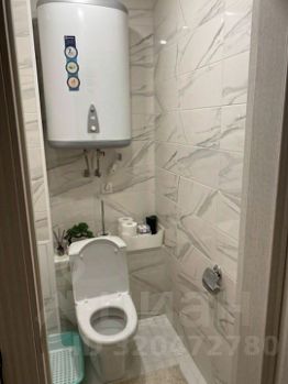 Раздельный санузел: отделан качественной плиткой, оборудован чугунной ванной, водонагревателем и просторным шкафом.