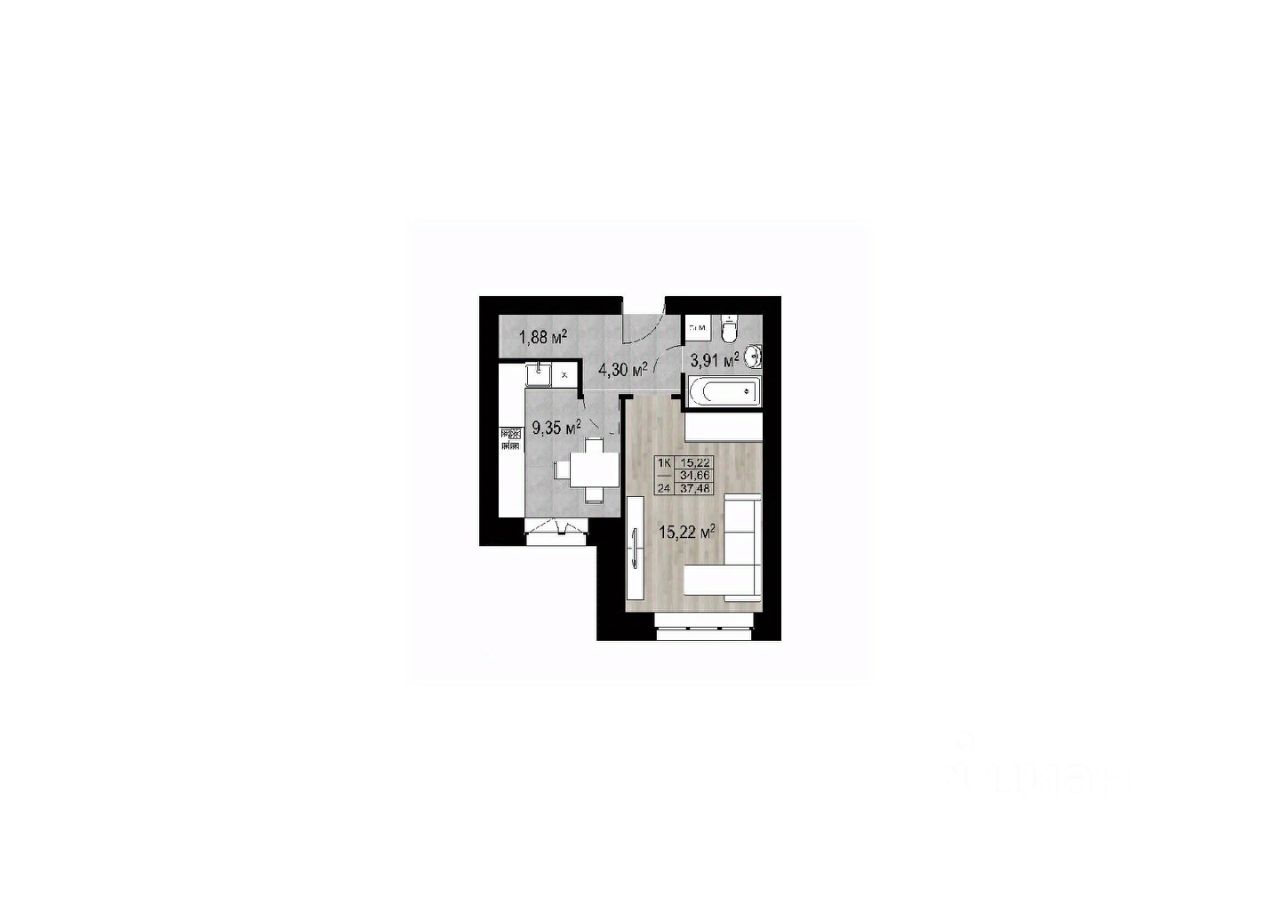 34,66 м²