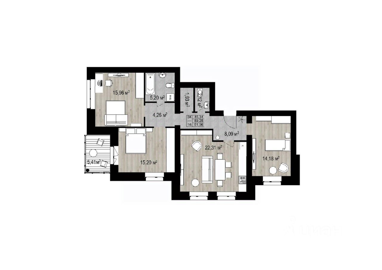 Продаётся 3-комнатная квартира в строящемся доме (Строение 1), срок сдачи: IV-кв. 2025, общей площадью 91.96 кв.м., на 4 этаже. Новый жилой комплекс по ул. Тулупова от застройщика ООО СЗ "КС55".