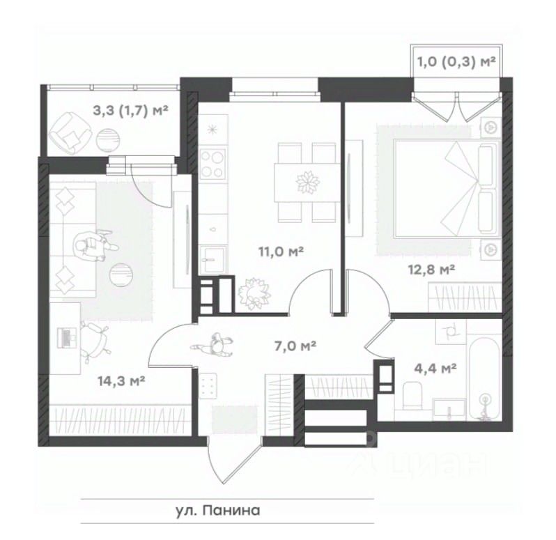 Семейная квартира - 2 комнаты и просторная кухня-гостиная с выходом на лоджию