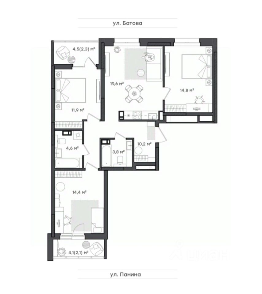 *Квартира с тремя комнатами