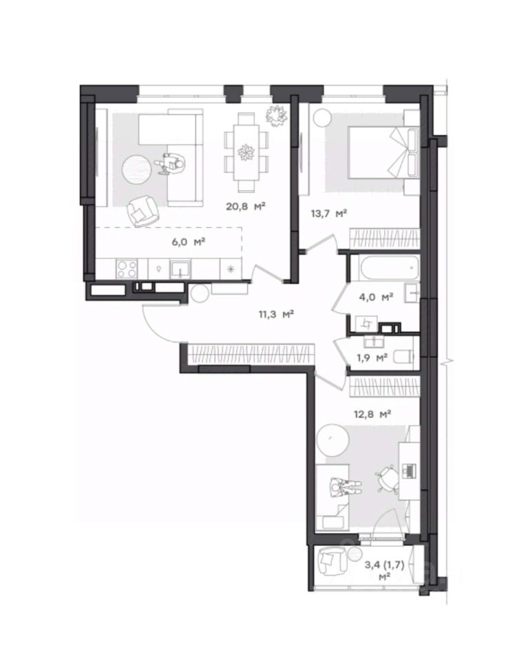 *Квартира с двумя комнатами