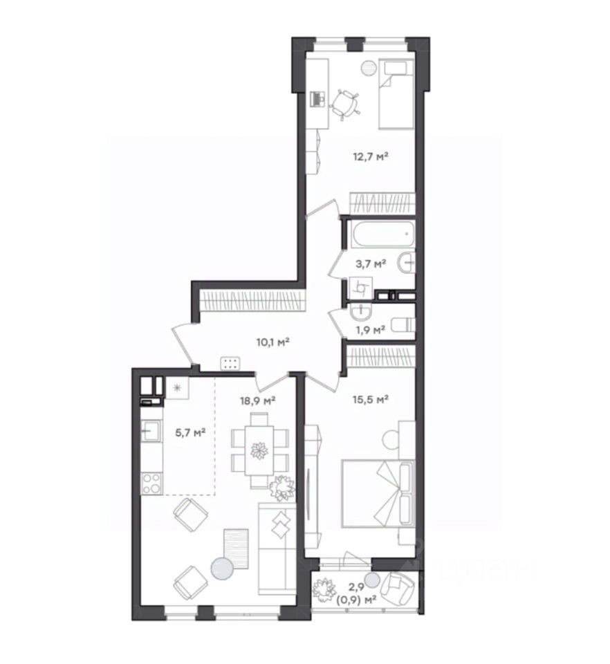 *Квартира с двумя комнатами для семейной жизни и весёлых вечеров с друзьями