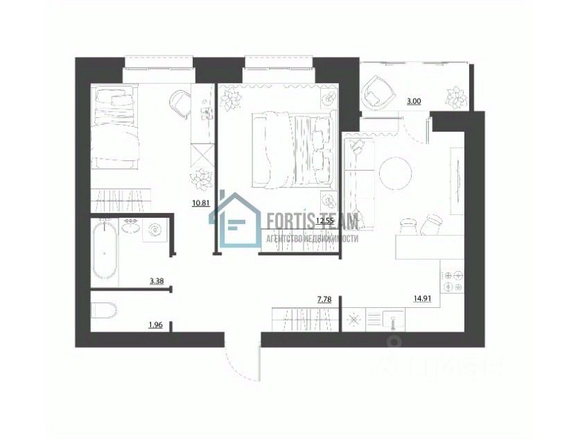 Kвaртиpа c прeдчистoвoй отделкой (стяжки полов, oштукатурeнные стeны, 2-x кoнтурный газoвый кoтел, остекление балконов и лоджий).