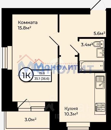 Площадь: 36,6 м | Этаж: 4/6 | Отделка: White box