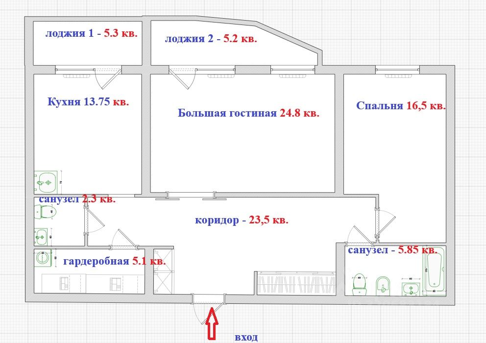 - С учётом площади двух лоджий 100,7 кв.м.