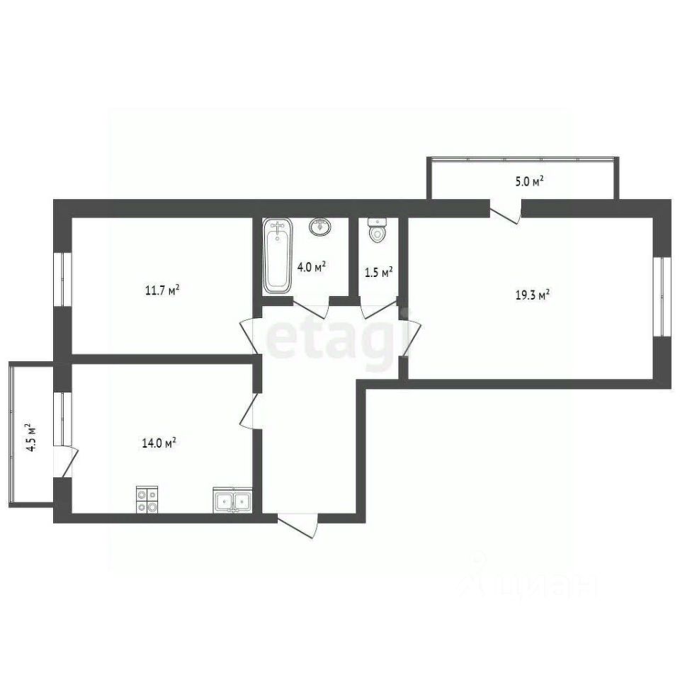 Технические параметры: Комната -19.3кв.м, Комната-15 кв.м, Кухня -14 кв.м, Гардеробная, раздельный Санузел, ванная комната 6 кв.м, Прихожая 9 кв.м.