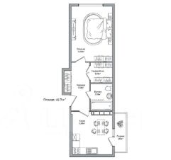 Продаю БОЛЬШУЮ 1-кoмнатнaя кваpтиру 44,71 м² по цене студии