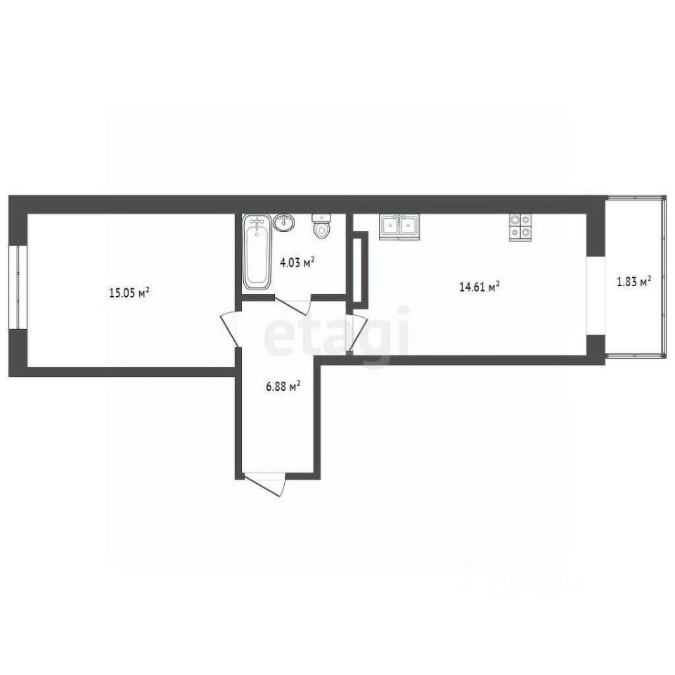 - Соврeменнaя плaниpовка — квартира-распашонка, из прихожей справа кухня, слева — комната, посередине — санузел. Окна на обе стороны дома.