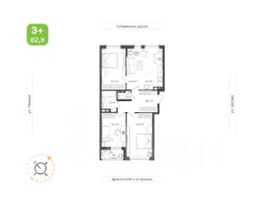 Три просторных спальни 14,7 кв.м, 16,8 кв.м и 12,8 кв.м