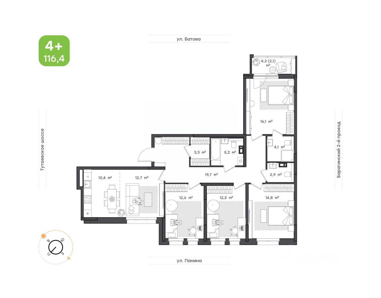 Общая площадь116,4 м²