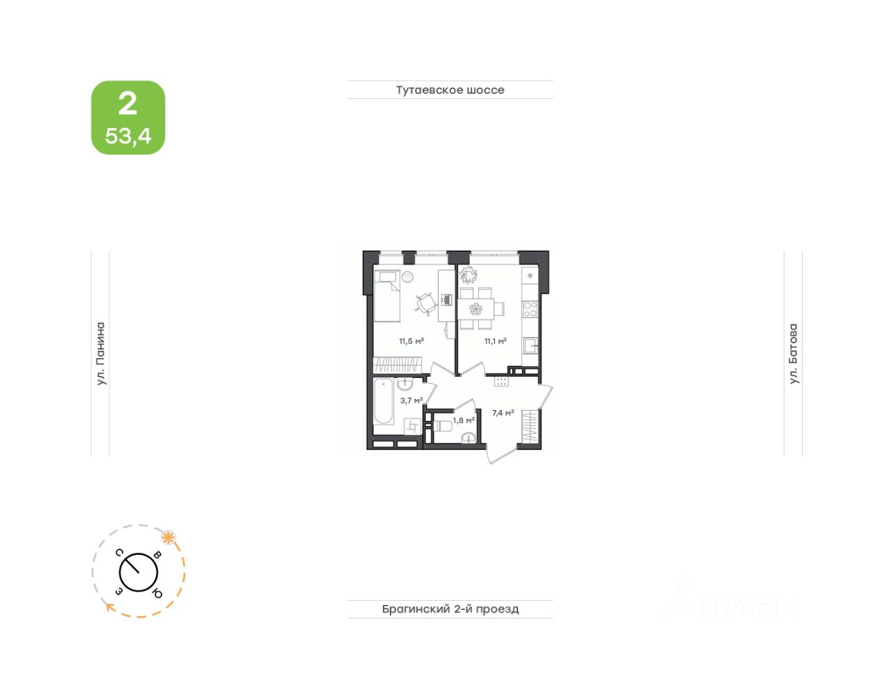 Справа от кухни расположена родительская спальня 16, 3 кв. м. Здесь можно обустроить уютную зону отдыха и релакса. А выход на балкон 4 кв. м станет прекрасным местом для любования закатом или прочтения книги