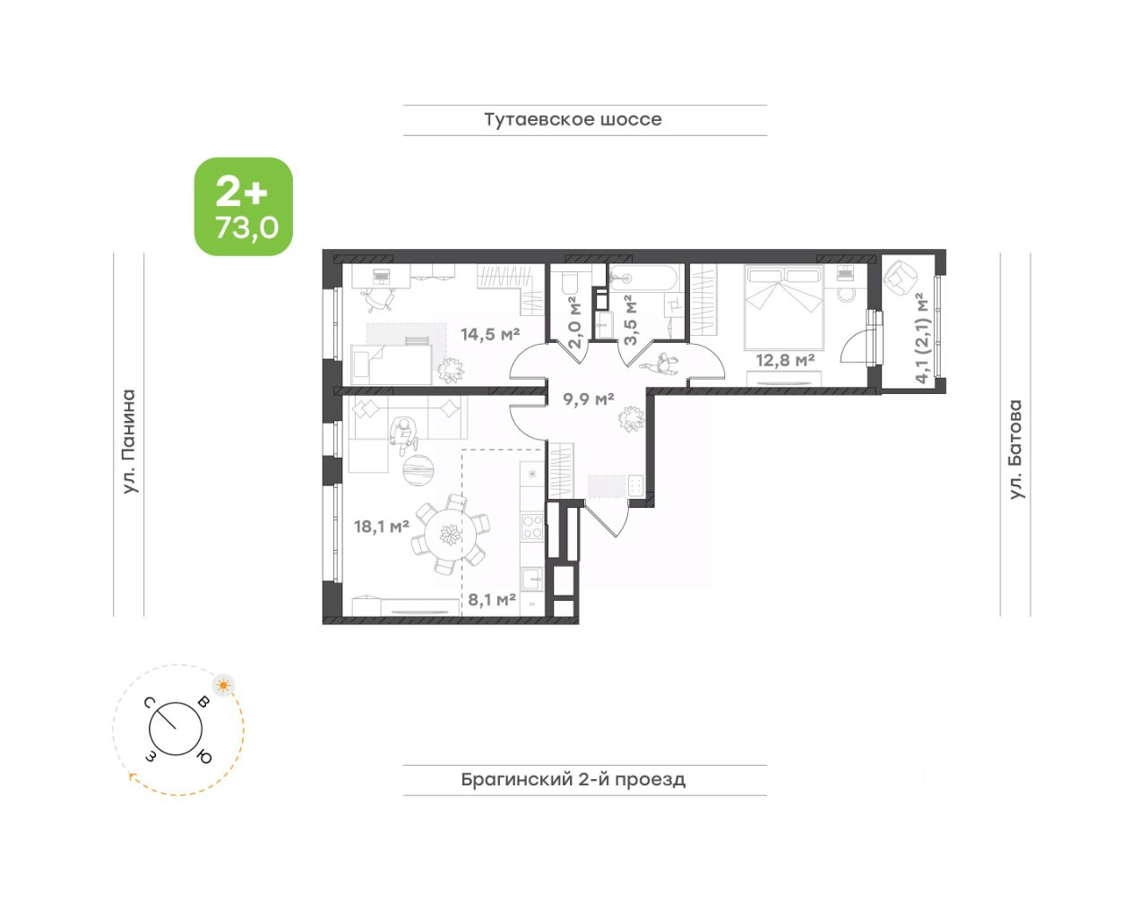 Семейная квартира формата 2+ Просторная квартира с прихожей почти 10 кв.м. Функциональная кухня-гостиная. Две спальни, окна которых выходят на разные стороны света. В одной из спален есть своя лоджия, где можно обустроить дополнительную зону отдыха. Раздельный санузел.
