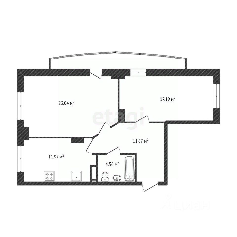 Удобная планировка. Метражи: гостиная 23 м, вторая комната разделена на две изолированные спальни для ребёнка и для родителей.