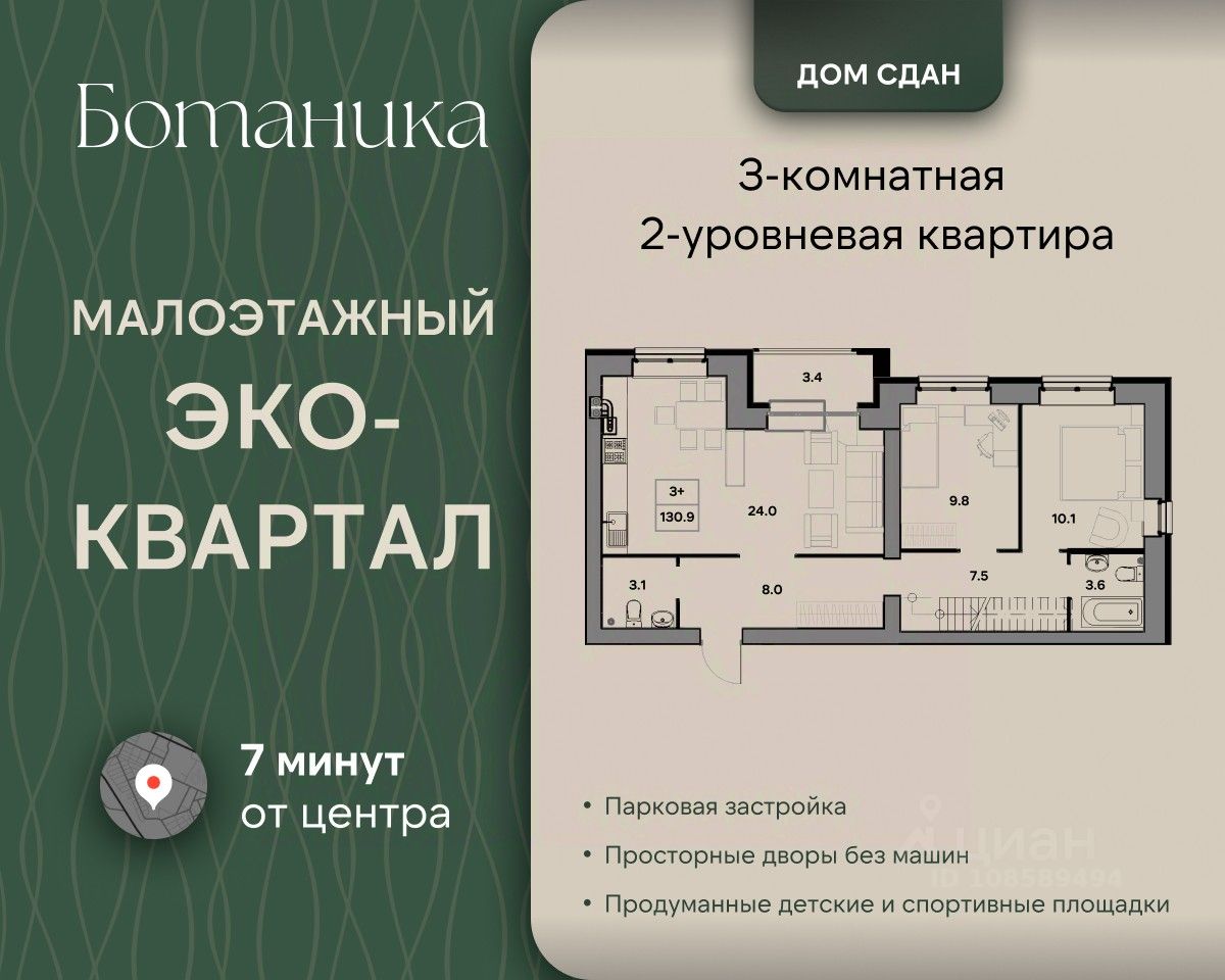 Жилой квартал "Ботаника" —это современный малоэтажный эко-квартал в Ярославле.brЖизнь в "Ботанике" — это виды на озеро и пробежки в сосновом бору, всего 7 минут до культурного центра города, современные кирпичные малоэтажные дома, большая приватная территория с детскими площадками и прогулочными зонами, свежий воздух и собственная развивающаяся инфраструктура.brНесмотря на малую этажность, наши дома оснащены современными бесшумными лифтами. Входные группы — это просторные светлые пространства с панорамным остеклением и безбарьерной средой. Здесь эстетика гармонично сочетается с заботой о резидентах.brВсе квартиры создаются с соблюдением принципов эргономики, что позволяет реализовать разные жизненные сценарии. Мы предлагаем широкий выбор планировок: от уютных евро-однушек до двухуровневых лотов с личным выходом на крышу. В каждой квартире предусмотрена система индивидуального отопления.brВы можете приобрести квартиру как с предчистовой или чистовой отделкой, так и с полной меблировкой.brДетский сад находится всего в 6 минутах езды от квартала, школа — в 9 минутах. Также проектом предусмотрены собственная школа на 1000 мест и два детских сада, которые будут построены прямо на территории "Ботаники".brКвартира 19