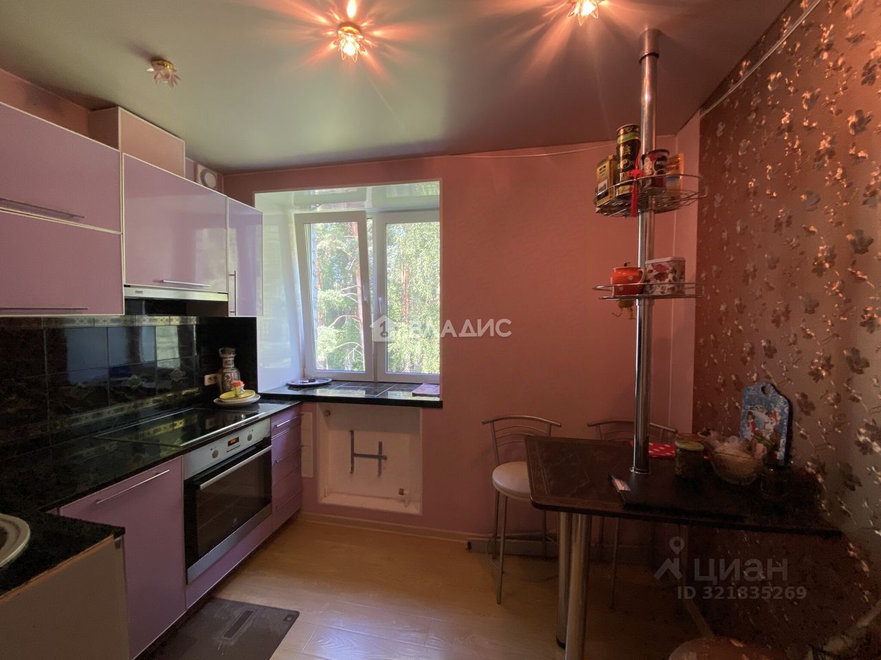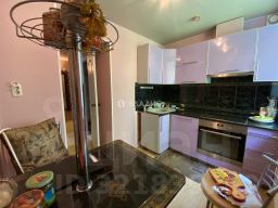 В квартире остается кухонный гарнитур, стол, варочная панель, вытяжка, духовой шкаф, новая посудомоечная машина.