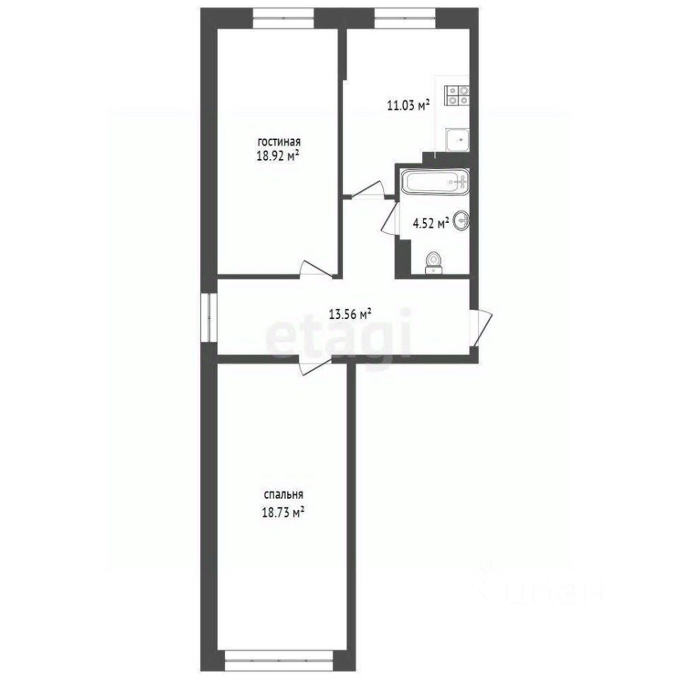 Жилая площадь — 48,68 м²