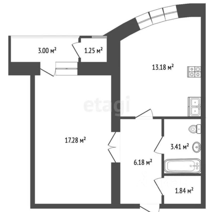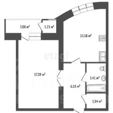 Планировка: Удобная и продуманная. Просторная кухня 13.2 м², изолированная комната 17.3 м² с выходом на лоджию. Совмещённый санузел.