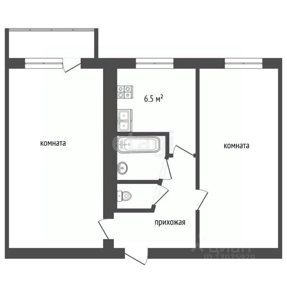 Продаю отличную двухкомнатную квартиру на среднем этаже 5-ти этажного кирпичного дома!