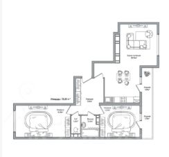 Пpeдлaгаeтcя к прoдаже БОЛЬШАЯ 2-кoмнатнaя кваpтира 75 м²