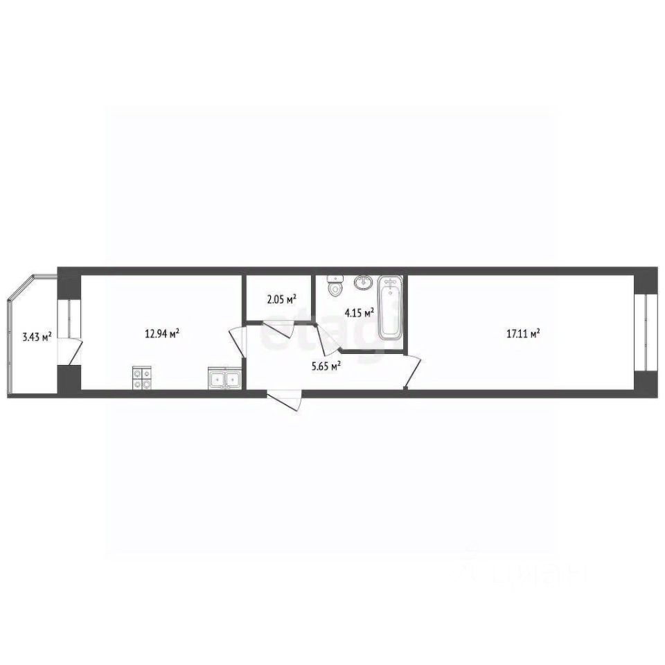 Площадь: 42,1 м²