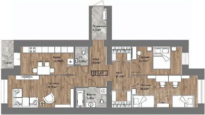 94,9 м²