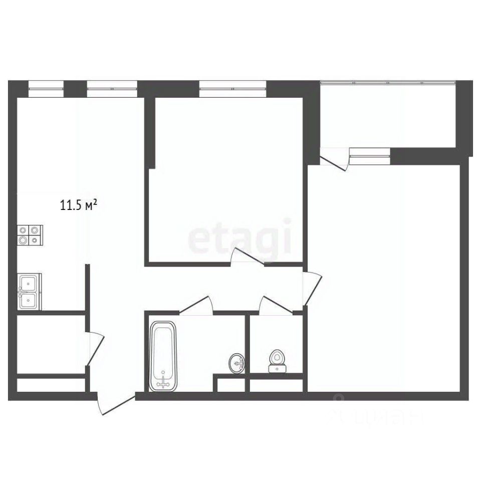 2 изолированные комнаты (11,5 и 16,1 м²) для уюта и личного пространства каждого;