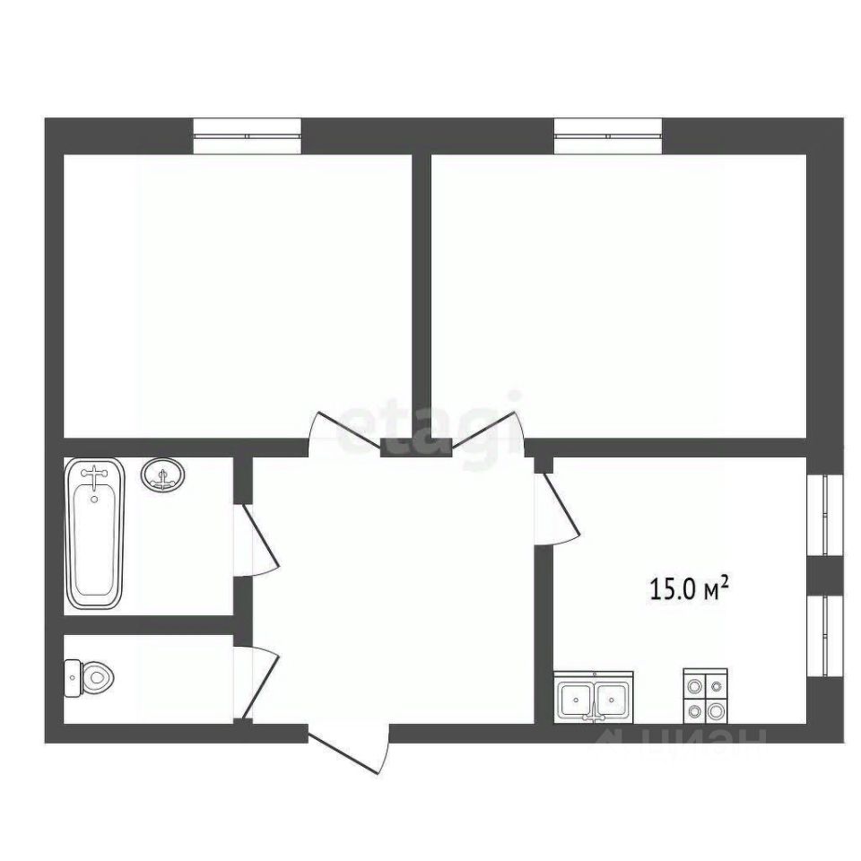 Компактный размер: 61,2 кв. м — удобно для одного или пары, с возможностью перепланировки