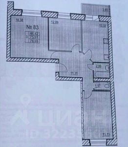 Общая площадь квартиры 75,6 кв.м., включает в себя: светлую и просторную гостиную 18,38 кв.м,две изолированные спальни 15,15 и 12,89 кв.м, кухню с современным гарнитуром, встроенной техникой, просторной обеденной зоной 13,37 кв.м., раздельный санузел.