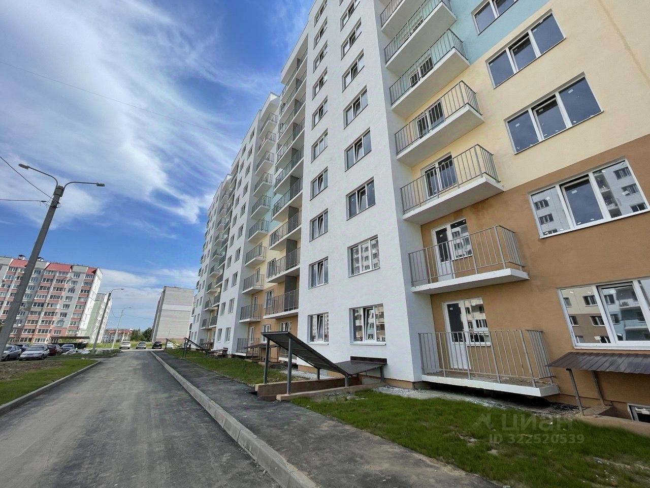 Благоустроенная дворовая территория: удобные пешеходные зоны и места отдыха, озеленение, детские площадки.
