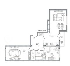 Две изолированные комнаты и большая кухня-гостиная, при желании можно сделать 3 изолированные комнаты.