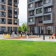 Территория ЖК огорожена, ведется видеонаблюдение, во дворе нет машин, имеется несколько детских площадок и спортивные тренажеры, вход в подъезд на уровне земли без ступеней и пандусов, что удобно для переноса мебели, бытовой техники, комфортно для родителей с маленькими детьми и для пожилых людей.