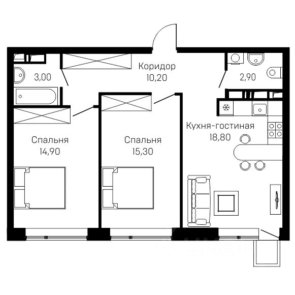 Продается 2-комнатная квартира 65,3 кв.м в строящемся доме ЖК Сити-парк Преображение. Дом сдан. Страхование жизни и здоровья и страхование имущества бесплатно.