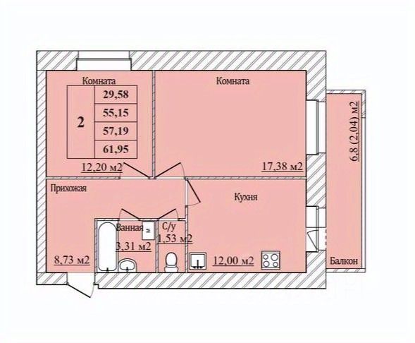 Представляем двухкомнатную квартиру в кирпичном доме, которая станет идеальным решением для комфортной жизни. Общая площадь 57.19 кв.м. грамотно распределена между просторной кухней 12 кв.м. и уютной жилой зоной 29.58 кв.м. Квартира расположена на 1 этаже 8-этажного здания, что обеспечивает удобство перемещения.
