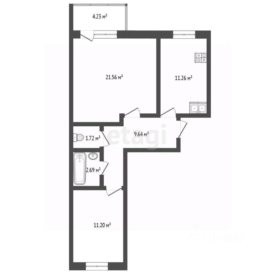 Просторная застекленная лоджия увеличивает полезное пространство и может использоваться в течение всего года.