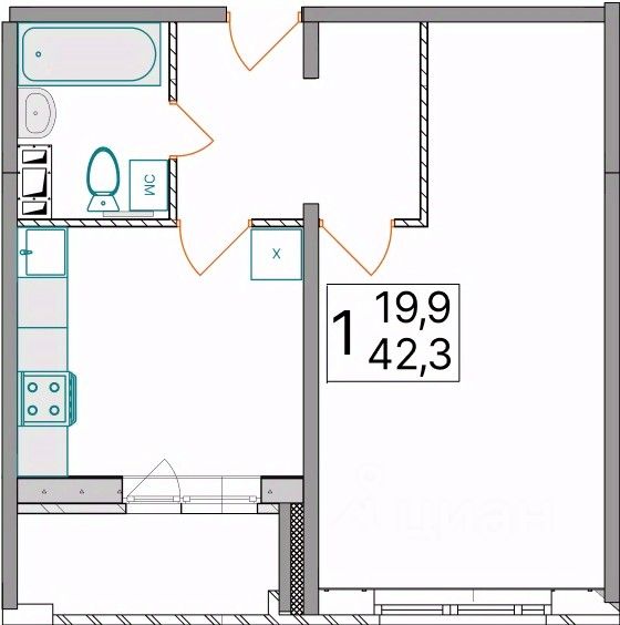 Общая площадь42,3 м²