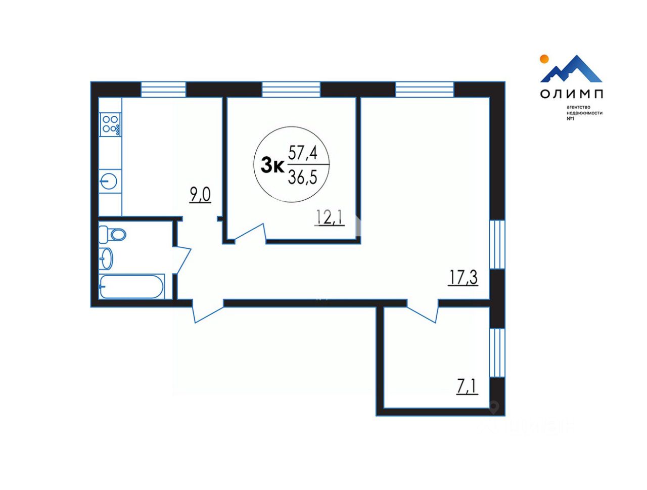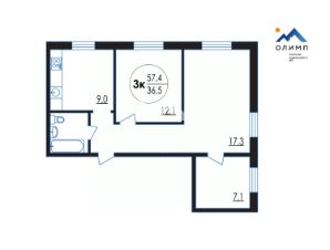 Уютная 3-комнатная квартира,57.4 м.