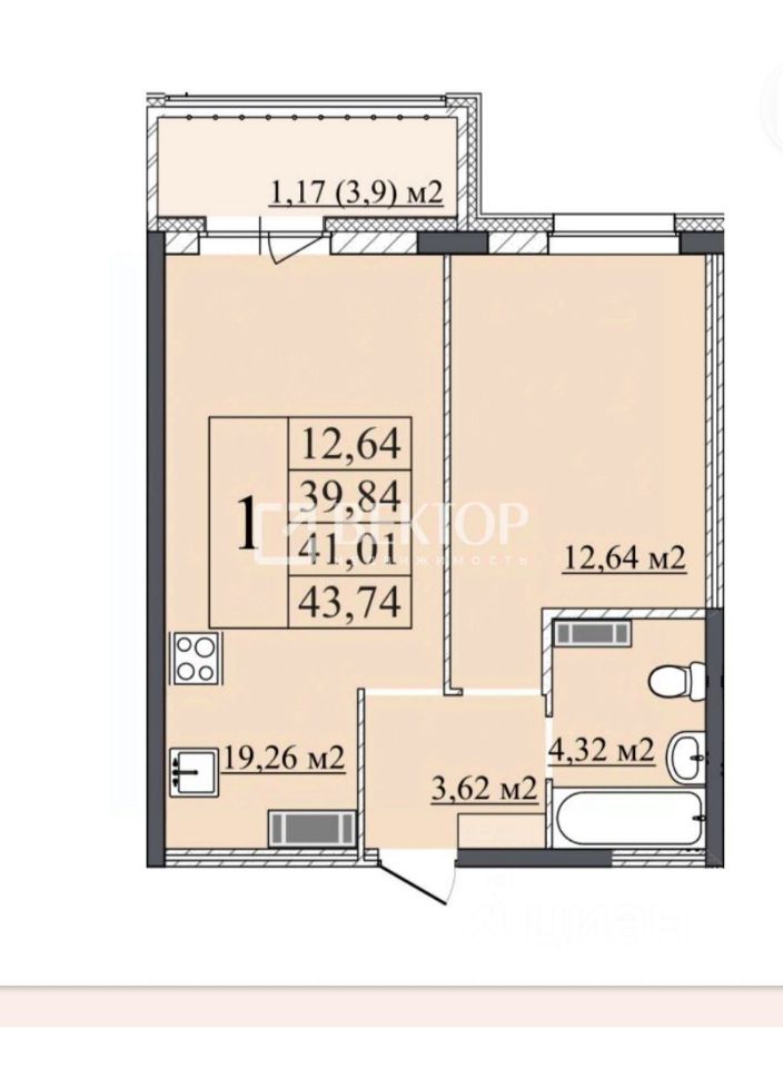 - Площадь: 56.68 кв.м