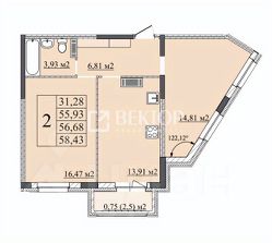 Предлагаем вашему вниманию светлую и просторную квартиру в современном жилом комплексе! Общая площадь - 56,68 кв. м, квартира расположена на 8-м этаже 18-этажного монолитного дома. Здесь вас ждут комфорт и уют: две комнаты с жилой площадью 31,28 кв. м и просторная кухня площадью 13,91 кв. м.