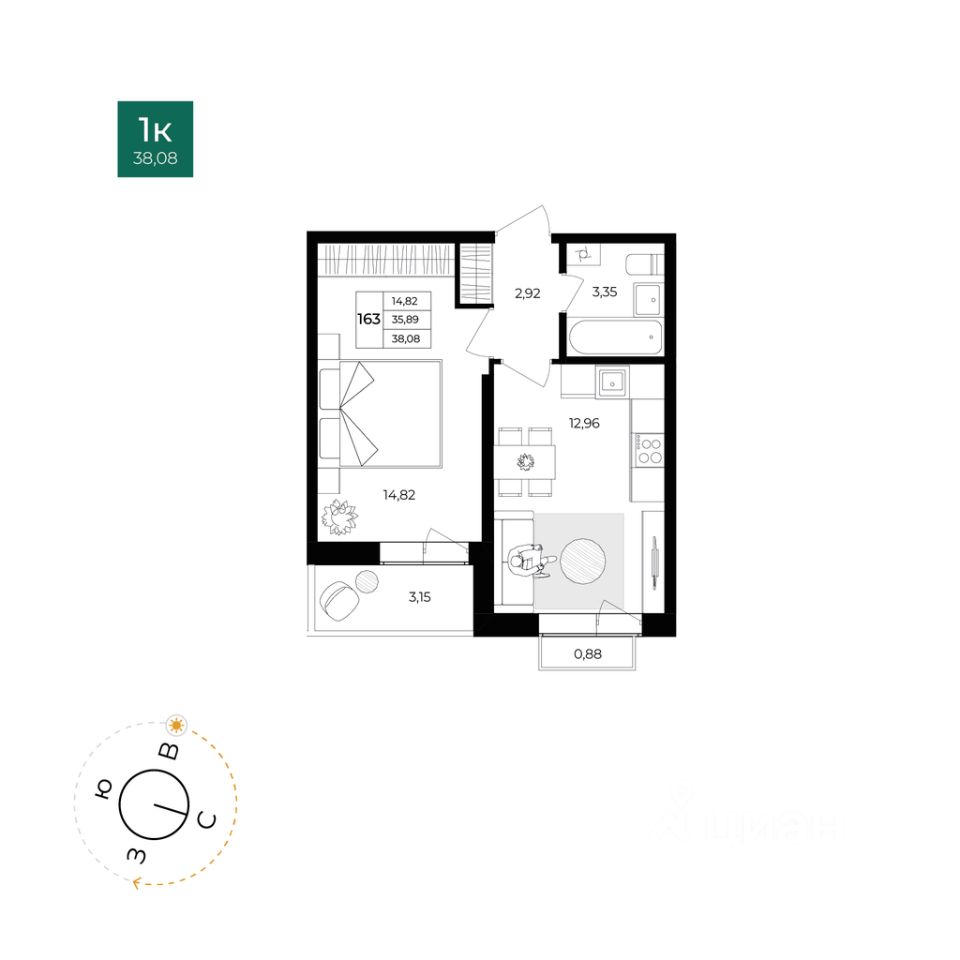 Жилая площадь14,8 м²