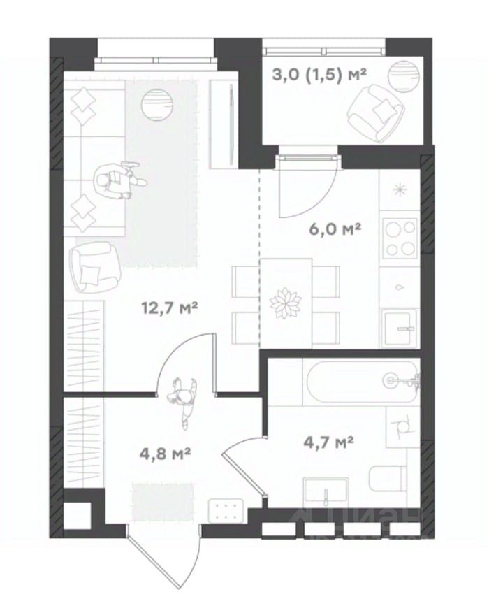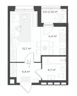 Жилая площадь12,7 м²