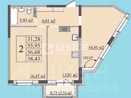 - Площадь: 58.43 кв.м